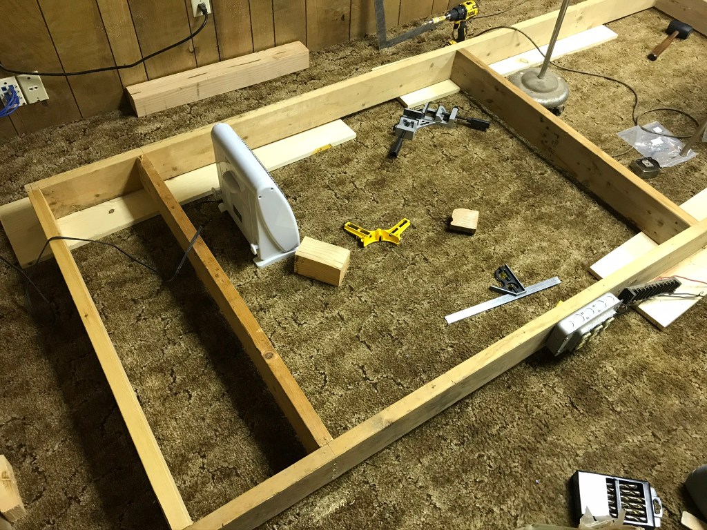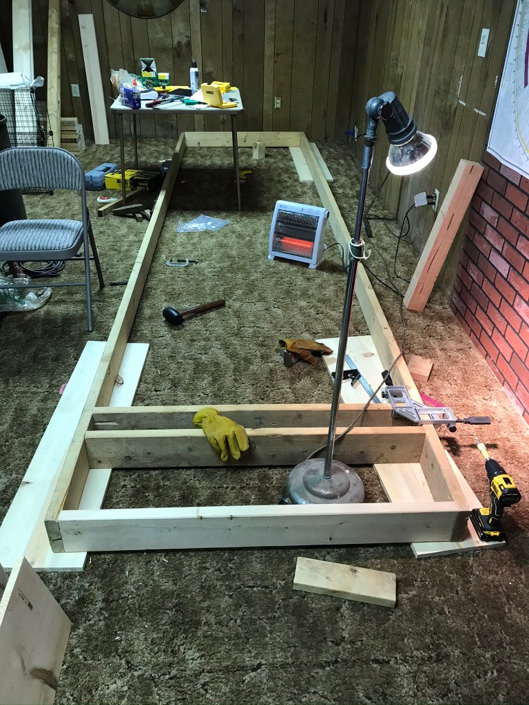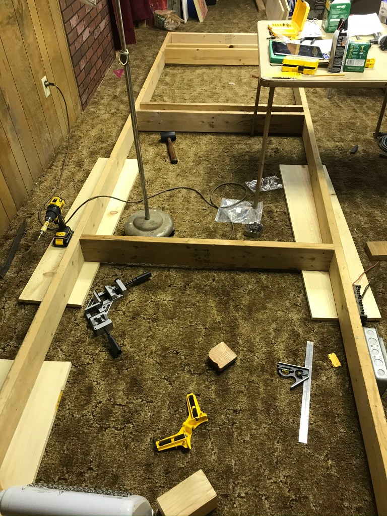 Using a souped up version of Greg Braun’s cantilever design, I started adding the first cross members for the leg support.